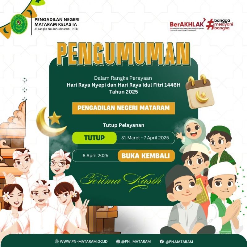 Pelayanan di Pengadilan Negeri Mataram Kelas IA akan ditutup sementara mulai: