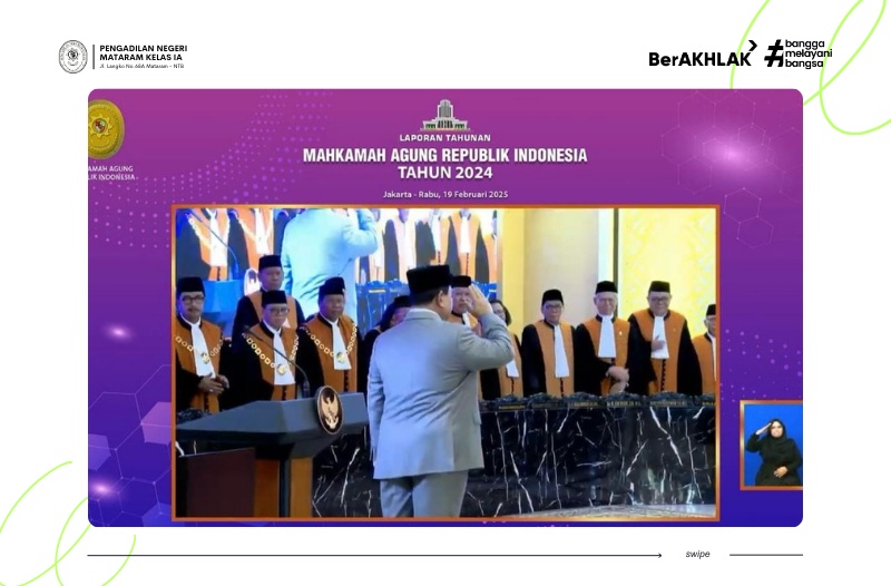 Rabu, 19 Februari 2025, pukul 09.00 WIB, Ketua Pengadilan Negeri Mataram Kelas IA, Bapak Ary Wahyu Irawan, S.H., M.H., menghadiri Sidang Istimewa Laporan Tahunan (Laptah) Mahkamah Agung RI di Gedung Mahkamah Agung, Jakarta.